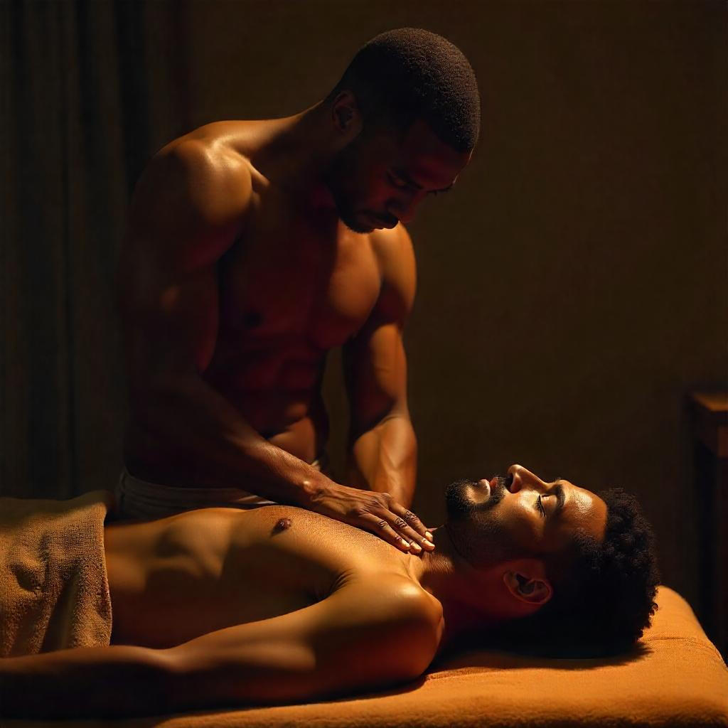 Sensual Gay Erotic Massage by a Muscular Black Masseur